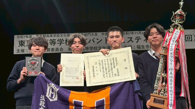 令和7年度 東京都高等学校文化祭 軽音楽部門中央大会 「東京都高等学校対抗バンドフェスティバル(第18回)」が11月24日(月・祝) 福生市民会館 大ホールで行われ、本校音楽部の高校2年生バンド【万有引力(バンユウインリョク)】が見事「グランプリ」を受賞しました!!