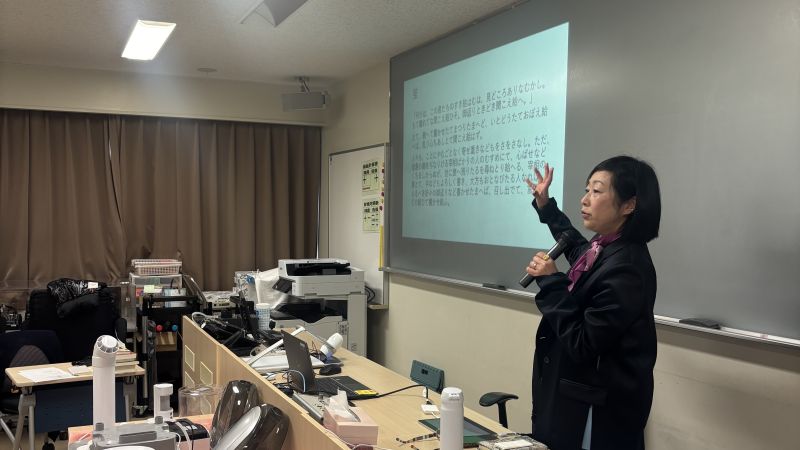 昨年度の高校3年生三学期プログラムとして、木村朗子先生(津田塾大学教授)をお招きし、特別講座を開催しました。本講座は、「文学国語」(高3)で一年間課題図書として読んできた『百首でよむ「源氏物語」―和歌でたどる五十四帖』(平凡社新書、2023年)をもとに実施したものです。前半は木村先生による講義、後半は本校教員との対談および生徒による質疑応答を行いました。和歌を手がかりに『源氏物語』を読み解く視点や、古典を学ぶ意義についてのお話は、生徒にとって一年間の学びを深める貴重な機会となりました。また、総合探究の取り組みにも触れ、文学と現代社会をつなぐ視点についても示唆をいただきました。著者ご本人から直接学ぶことのできる、大変充実した時間となりました。