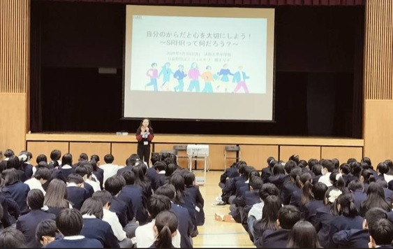 「世界の10代の女の子の最大の死因は何だと思いますか?」という問いかけから、講演会がスタートしました。妊娠・出産により世界では多くの命が失われていること、月経、ボディイメージ、からだの権利、バウンダリーなどについて学ぶことができました。自分の人生を自分で決める、自分らしく生きるというメッセージが伝わる時間となりました。