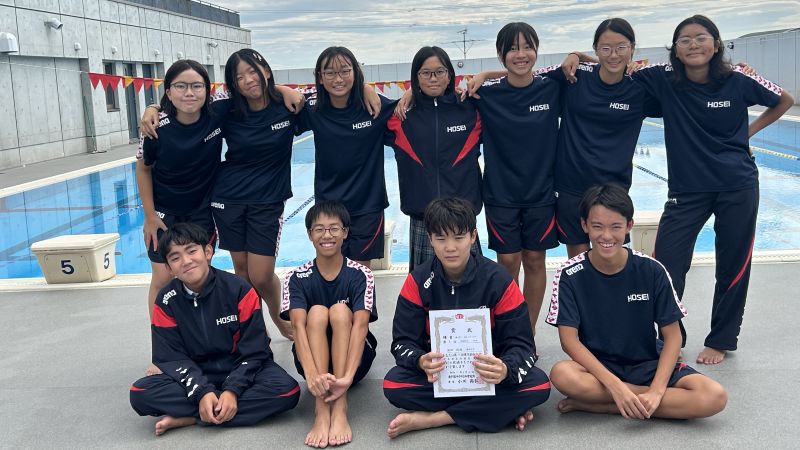 最後に、本校水泳部は中高一緒に活動を行っており、お互いに切磋琢磨しながら日々練習に取り組んでいます。今回優勝した部員のようにクラブチームでの練習と両立し活動している生徒もいますが、中高部員ともにこの夏たくさんの練習や大会、夏合宿を経て、主体性を持って活動し、成長が自信になりました。仲間の活躍が、中高関係なく部員の励みに繋がり、次の大会へ向けての活力となり、一体感を生み、また新しい代へと引き継がれていきます。今後とも法政中高水泳部へご声援の程、よろしくお願い申し上げます。