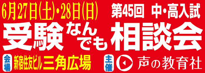 6月27日(土)・28日(日)に実施予定の声の教育社主催「第45回中・高入試 受験なんでも相談会」に本校も参加します。中学受験・高校受験をお考えの皆様にとっては志望校選びをする上で大変有意義な一日となることと思います。